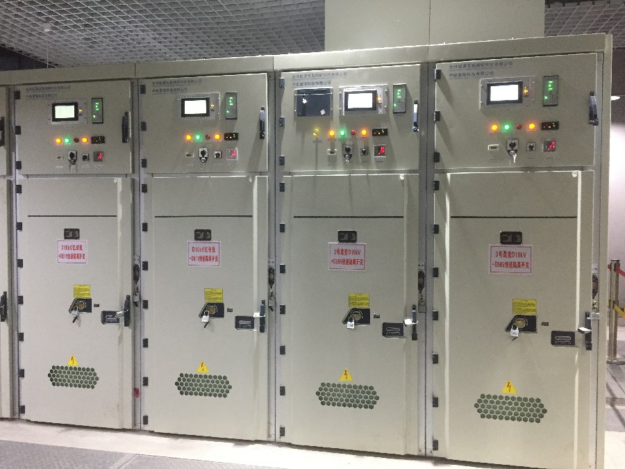 户内铠装移开式开关设备,系直流10千伏户内成套配电装置。主要用于直流配电系统中,配合直流电力电子变压器,起到快速隔离作用,具有常规交流开关柜五防功能。