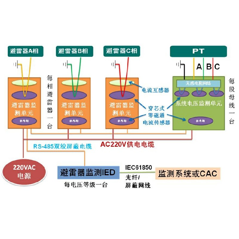 实现对避雷器的全电流、阻性电流、容性电流以及雷击次数、雷击时刻、系统频率、系统电压、三五七九次谐波分量等的实时在线监测,并通过运用现代数字信号处理手段对监测到的数据进行分析、拟合处理,并结合现场工况,及时的发现避雷器由污秽或内部受潮引起的瓷套泄漏电流或绝缘杆泄漏电流增大等问题,避免事故的发生。