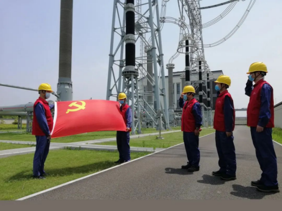 “我是共产党员我承诺,严格遵守各项操作规程,带头执行安全生产‘十不干’要求,切实做到党员身边无违章。”5月11日,在进入变电站现场作业前,面对鲜红的党旗,运检服务共产党员服务队队员举起右拳庄严承诺。搭建体温检测点、对作业人员逐个测温和登记健康码,对作业工具逐个消杀;检查安全工器具、布置现场安全围栏、核对标示牌、查看工作票……疫情防控及安全措施一气呵成。检修作业正式开始,鲜红的党旗高高飘扬,与蓝色工作服、共产党员服务队队服交相辉映,格外引人注目。