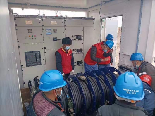 5月26日一大早,平高集团共产党员服务队就开始对设备进行检查维护,清点安装附件,做好设备安装准备工作。在青海省抗震保电应急管理中心的配合下,平高集团提供的两套移动变电站3个小时之内完成了10kV电缆接入、低压侧电缆送出、内部线路排查等工作,并顺利送电。为灾区安置点送上照明及供热电源,解决了灾区临时安置点供电不足的问题。