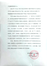 近日,国网郑州供电公司运维检修部、新乡供电公司运维检修部和中牟县供电公司运维检修部先后发来感谢信,对平高集团本次救灾抢修保电主动作为、及时响应,高质效完成受灾电站抢修保电工作表示感谢。