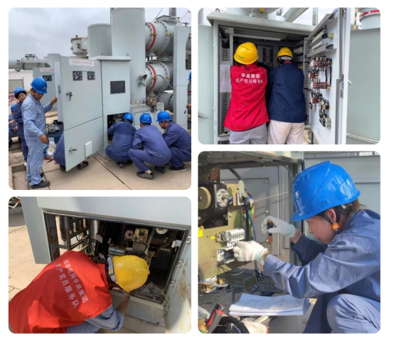 客服中心组建共产党员突击队第一时间奔赴受灾电站,涉水进入受灾电站,排查问题。结合现场排查情况,组织平高电气机构事业部、电控事业部和平高威海召开抢修策划视频会,研讨制定技术方案、配齐抢修队伍、筹备应急车辆和物资,群策群力,各司其职。