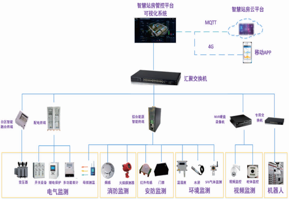 基于现代物联体系,利用大数据、人工智能、机器人等先进技术,对站房动力环境、图像、火灾报警、局放、照明、采暖通风、安防报警、门禁识别等实现在线监测和可靠控制,实现站房运维变“被动”为“主动”,提高配电资产管理效益,提升运维管理水平和供电可靠性,实现配电房管理数字化、智能化、可视化。