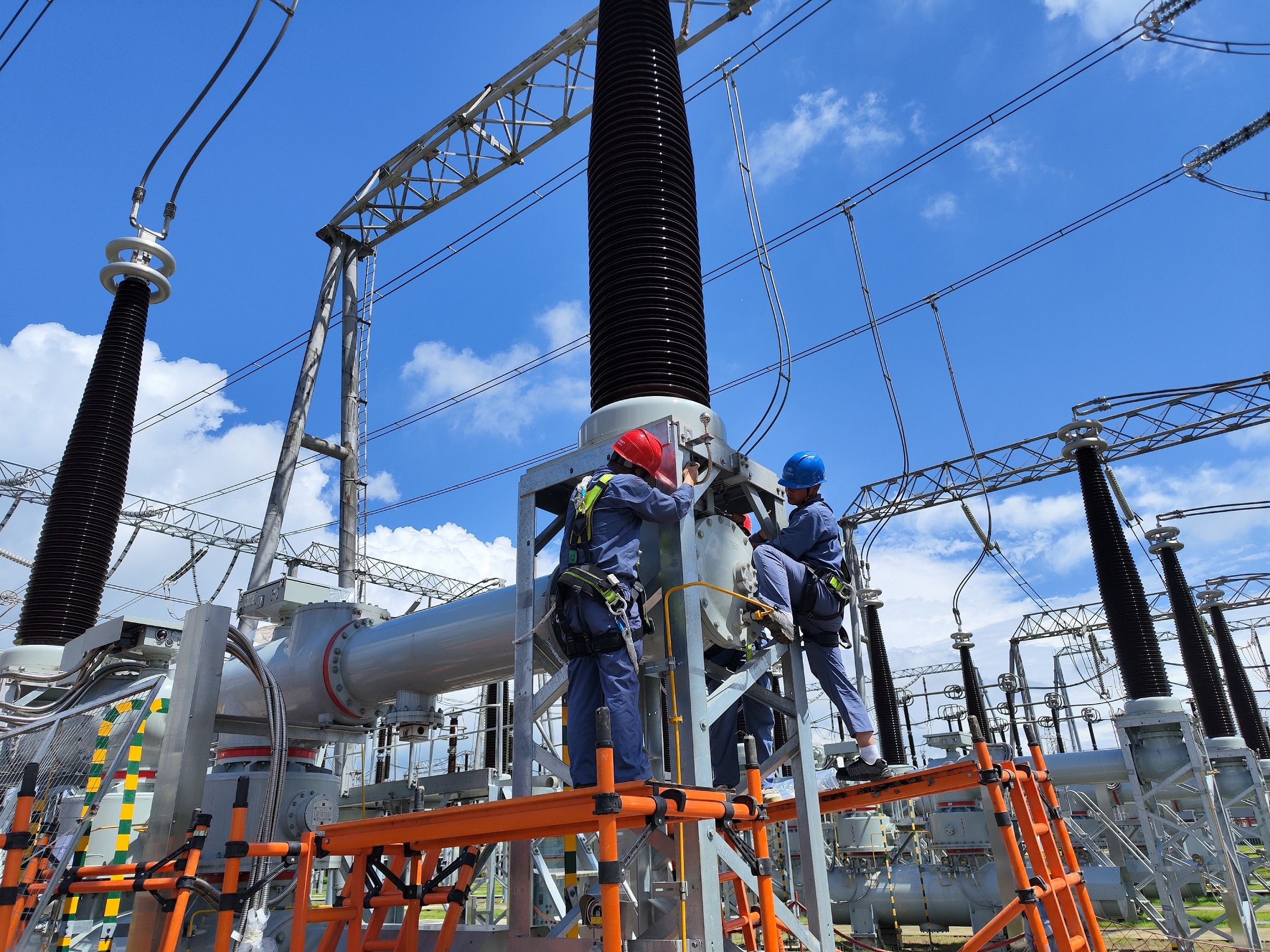2023年10月24日,在位于内蒙古锡林浩特市张北-胜利特高压交流工程胜利1000千伏变电站扩建工程现场,经过两个多月的紧张安装,平高集团为该工程供货的1100千伏GIS设备第一阶段安装完毕,并顺利通过现场耐压试验,为全站按期投运打下坚实基础。